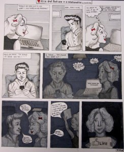 Another project was the “Comic Strip.” Students were to choose a current issue discussed in the news and create a 6-10 panel comic strip illustrating that issue. They had to design a main character and supporting characters for the comic strip.