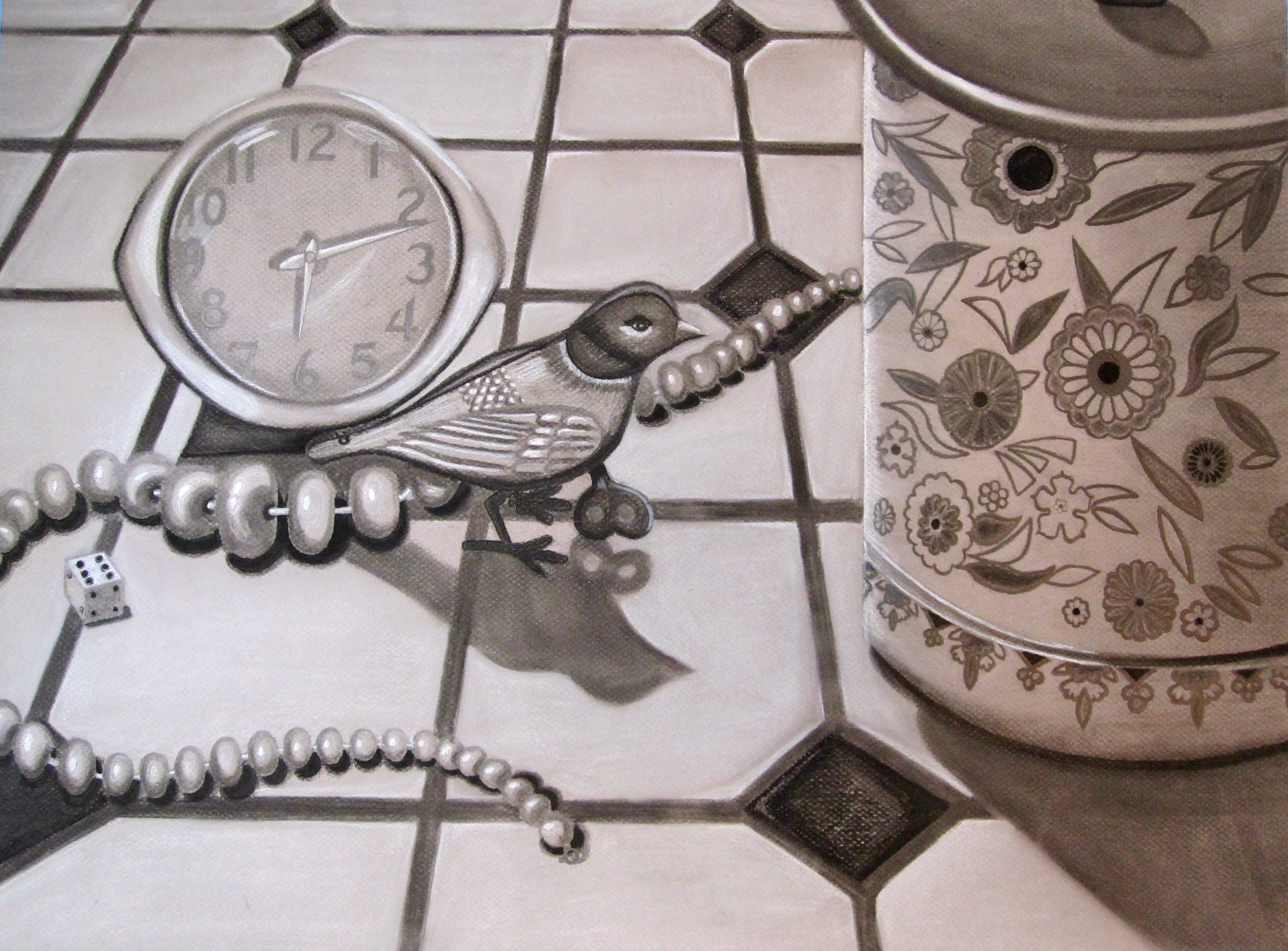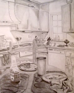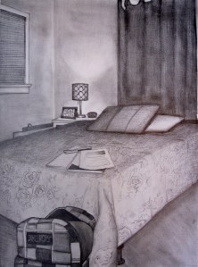 For the project below, the students were asked to depict an interior space that they see on a daily basis, using linear perspective. The students were also asked to include thematic elements that told a narrative of how the space functioned for them.