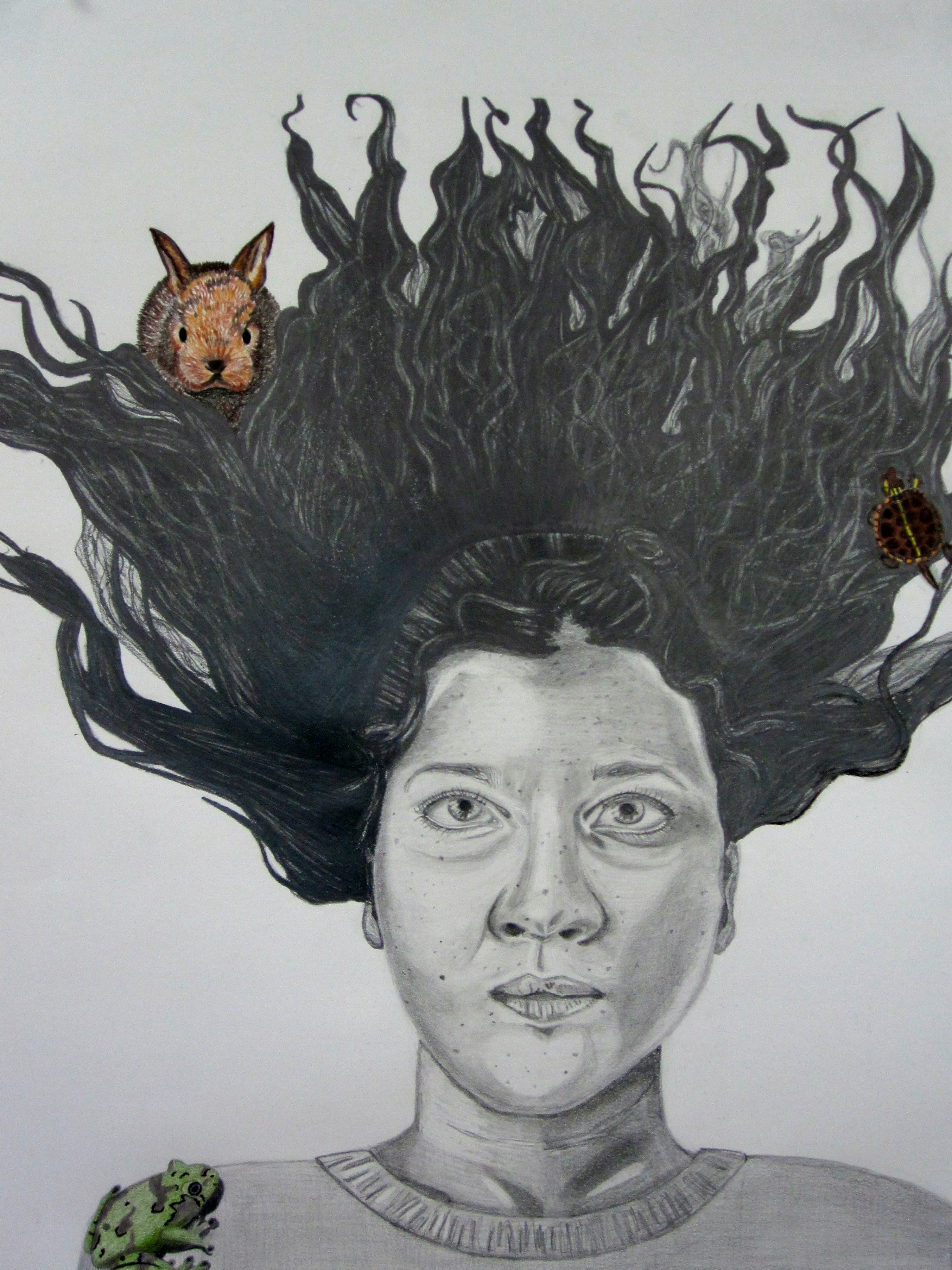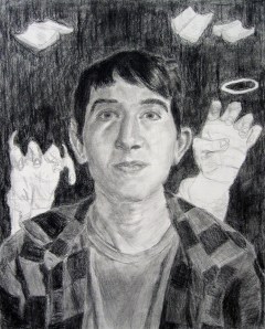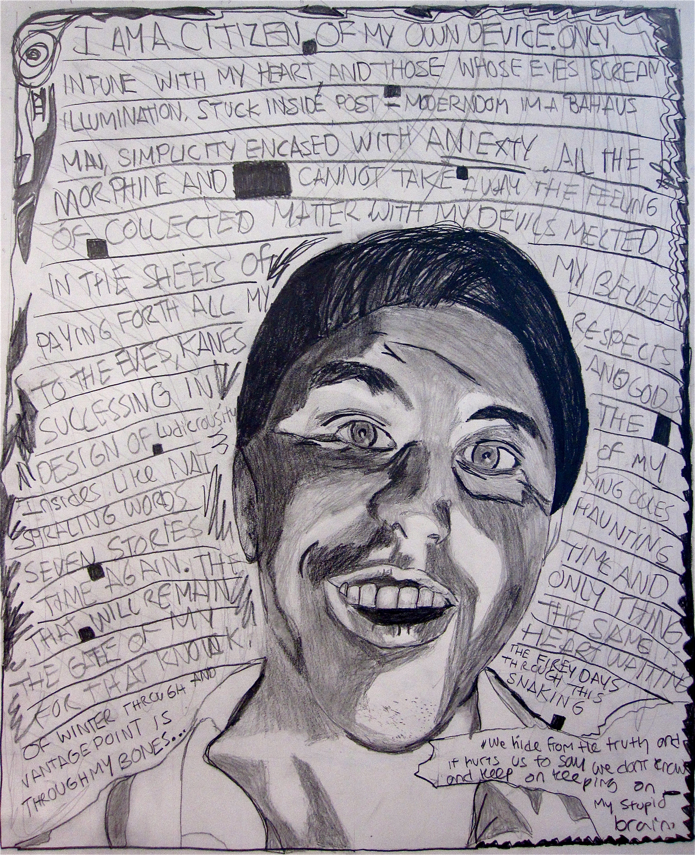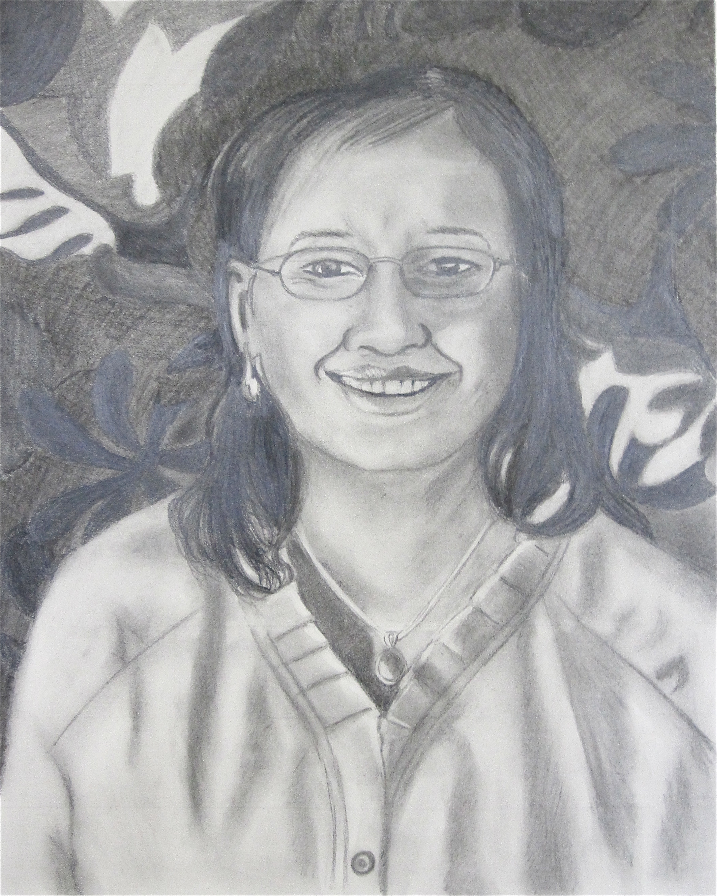 For the final project, Drawing 1 students were asked to create a self portrait using the grid method. After transferring their image, the students were to include additional elements in the background/negative space to enhance the drawing.