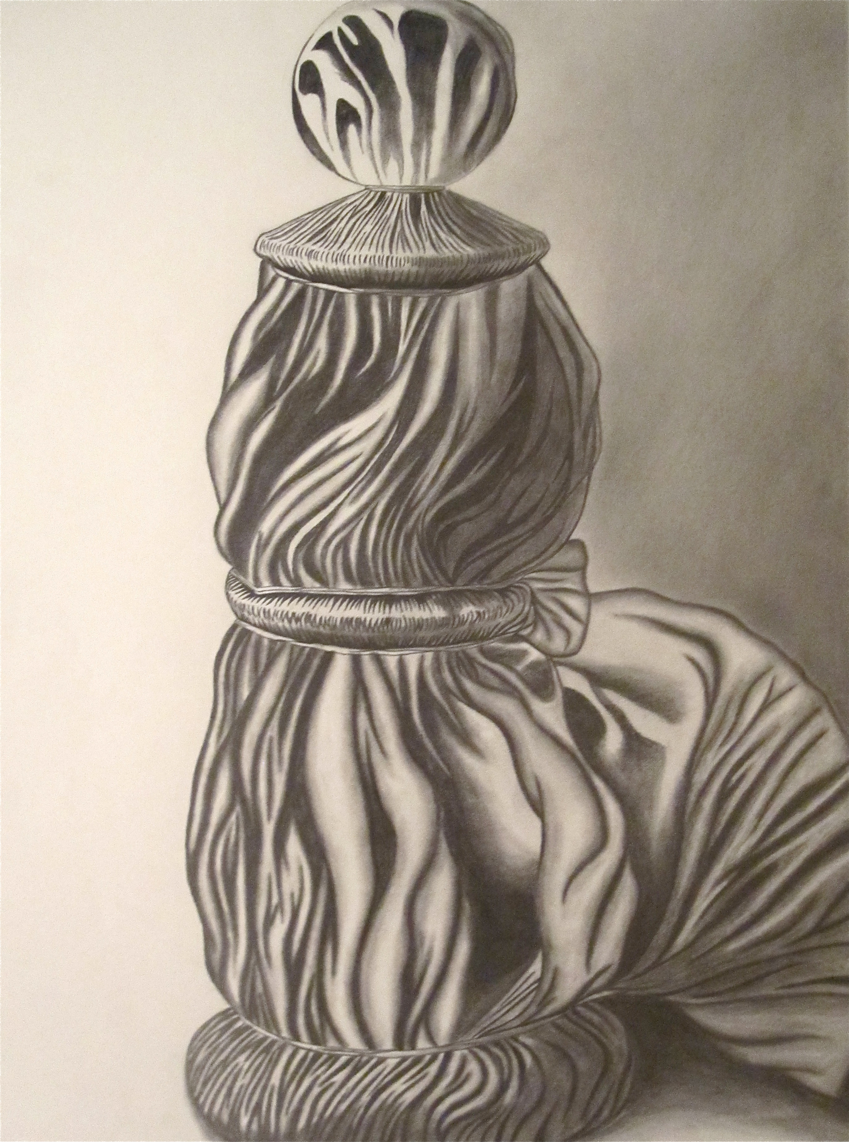 The Drawing 2 students were given a project inspired by artists, Christo and Jeanne-Claude. They were asked to choose an interesting object and wrap it in some type of material for working in class. After the students created the graphite drawing, they revealed the object underneath, to the class.