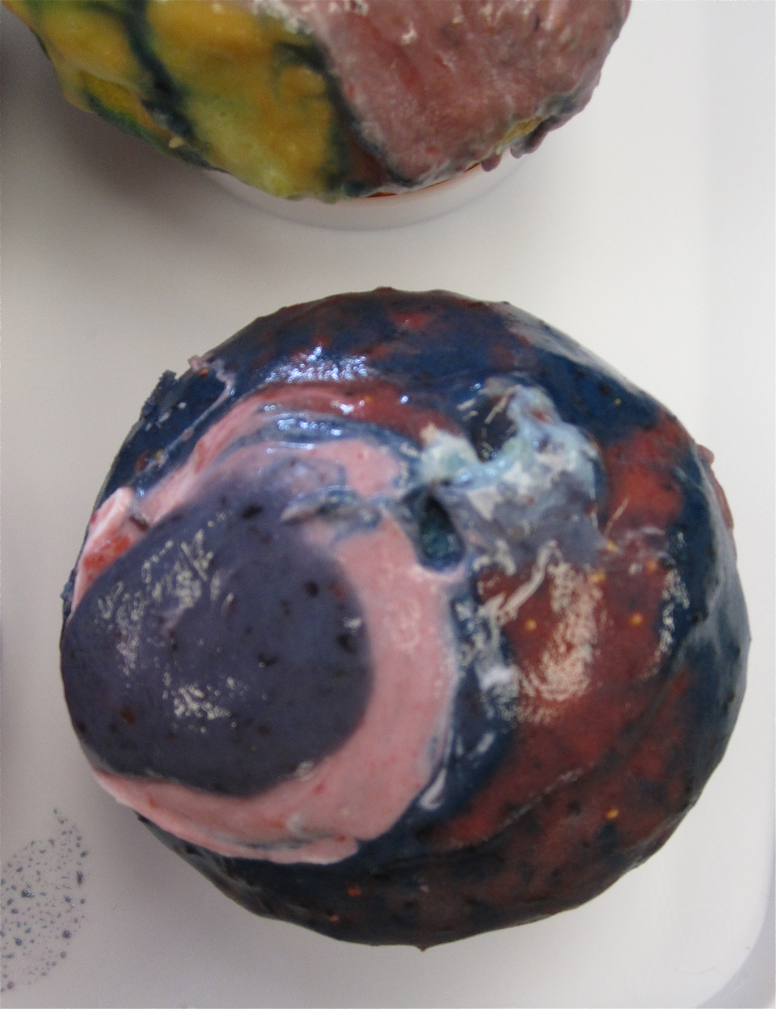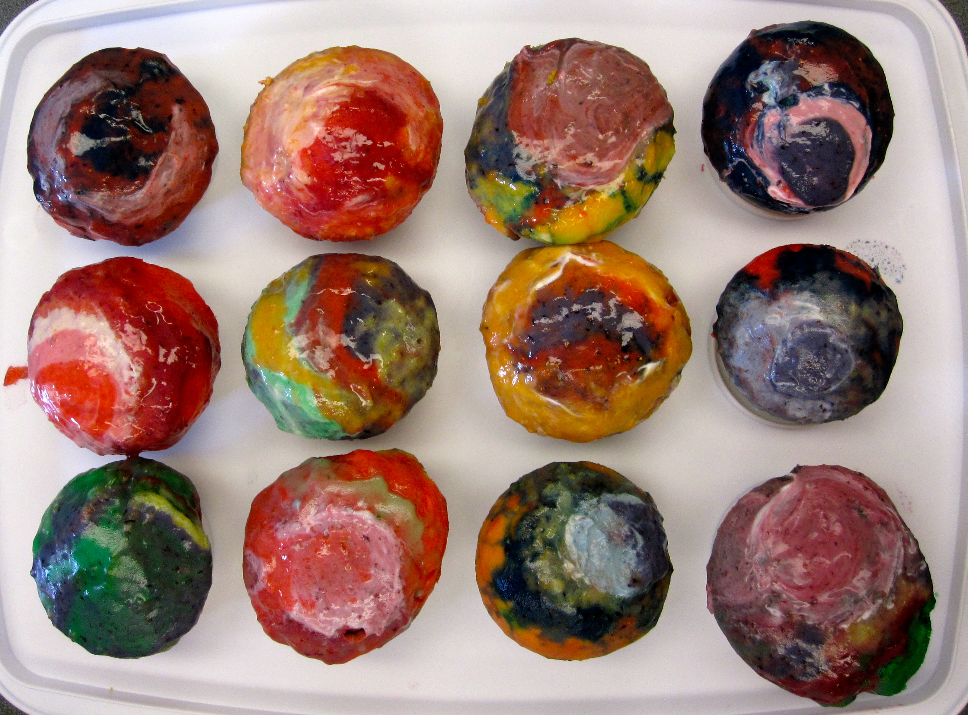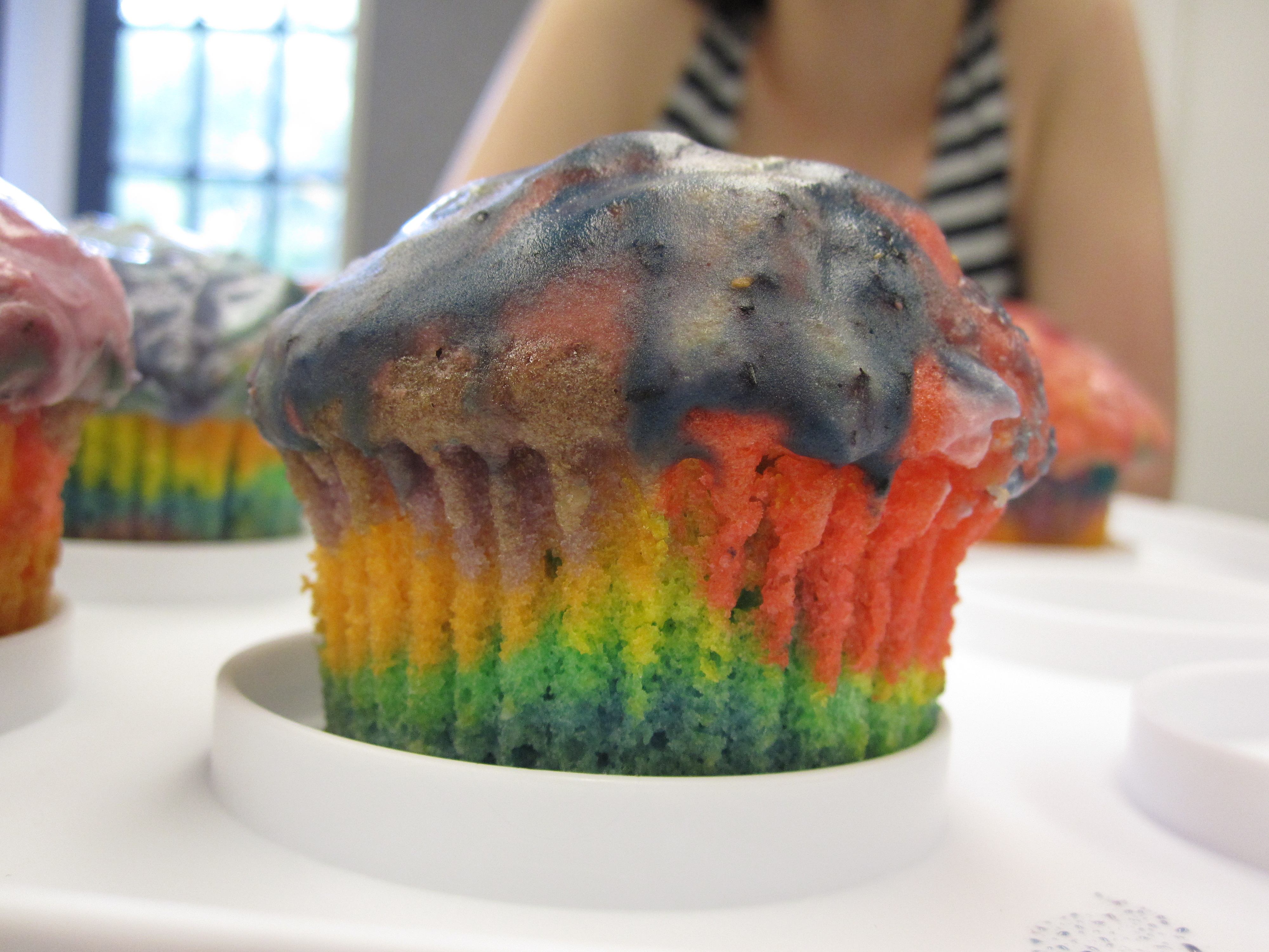The student below chose the color theory work by Wassily Kandinsky, titled Circles and Squares. As her remake, she made edible, homemade glazes and even layered different colored batter into the cupcakes. The final step was an interactive process in which fellow students were asked to try the cupcakes, explaining the different flavors discovered. This work covered several senses.