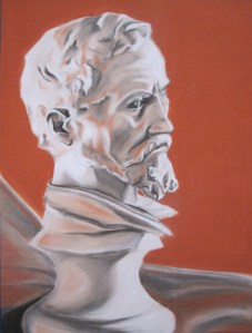 The image below is a drawing from the “Trois Crayon” project. The trois crayon method was a method used by artists of the Renaissance, in which they would draw with red, black and white calk on toned paper.