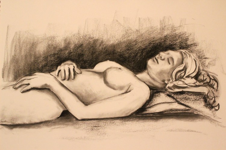 These are a couple drawings that I took away from tonight’s session at the Visual Arts Center of Richmond. Both drawings are charcoal on 18″ x 24″ white drawing paper.