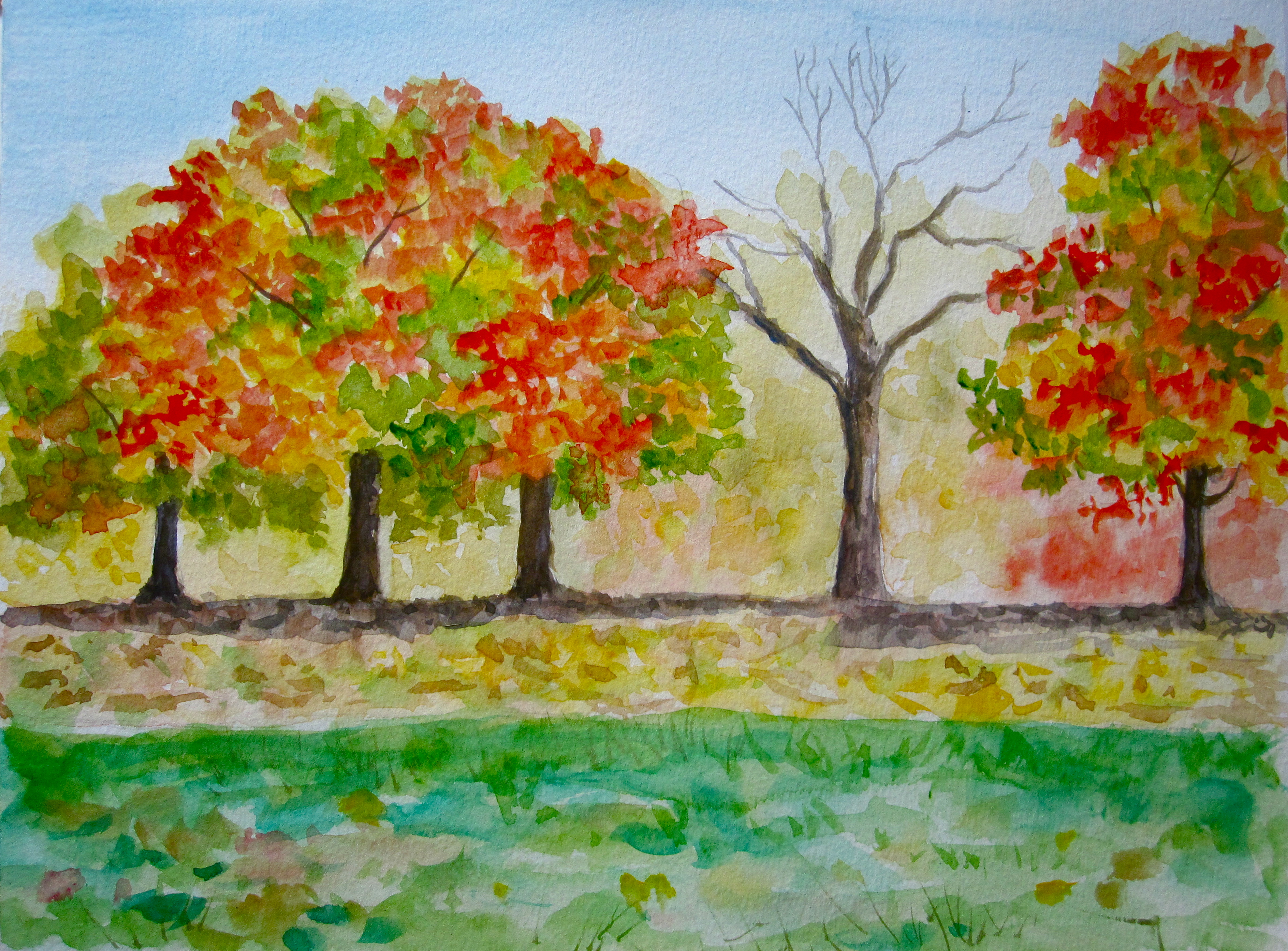 This morning, I went out to Maymont Park in Virginia, to meet up with some students who wanted to do some plein air (outside with natural light) painting. Only one brave student showed up today. It was chilly and the sun kept hiding from us but I ended up getting a nice little study of the fall trees!